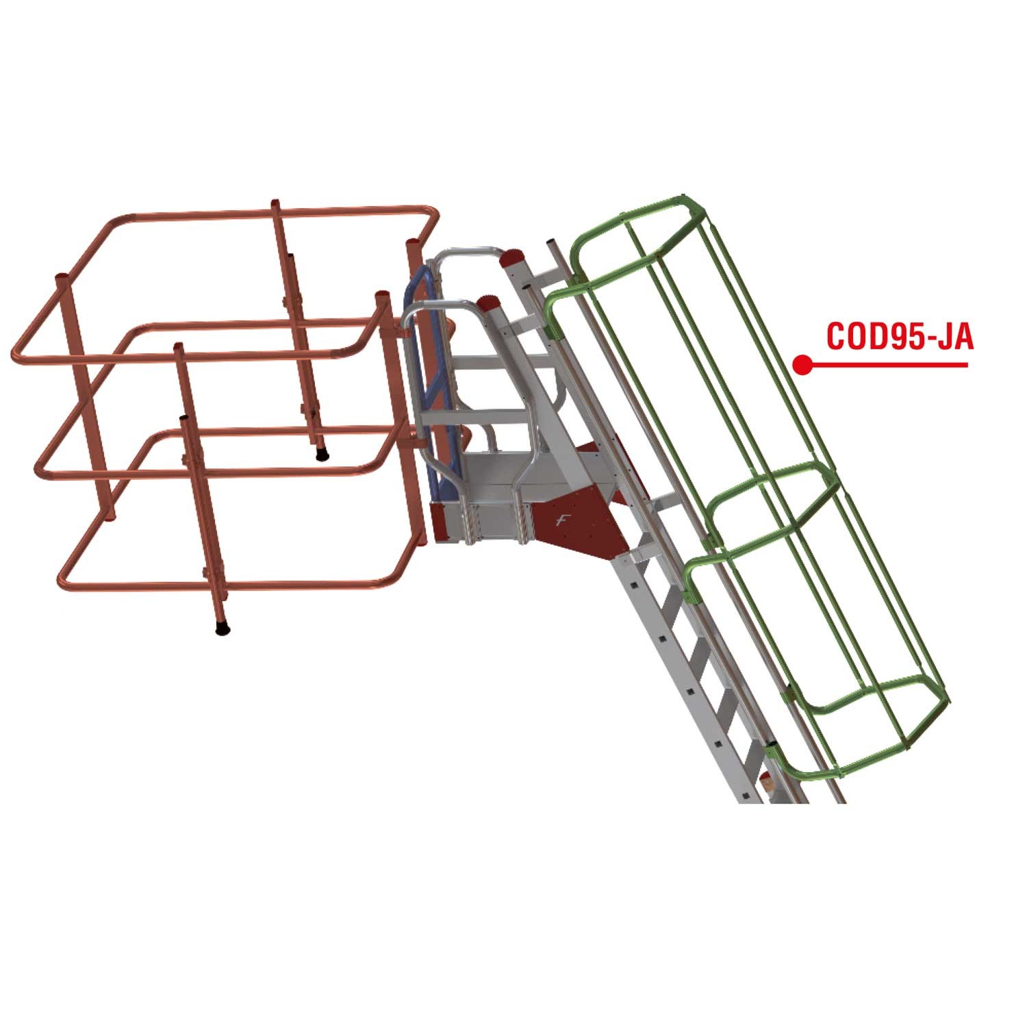 A gaiola de segurança permite uma subida mais segura através da escada para aceder ao veículo. É constituída por dois anéis tubulares curvos de alumínio ligados por meio de correias aparafusadas às extremidades dos anéis tubulares. O produto é composto por duas gaiolas de 1 m e 1,5 m, respetivamente. Acessório opcional.