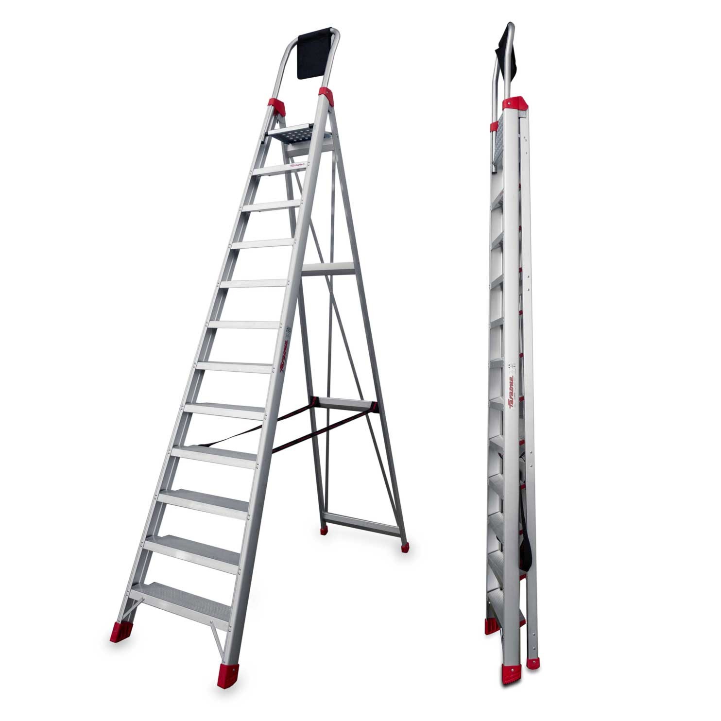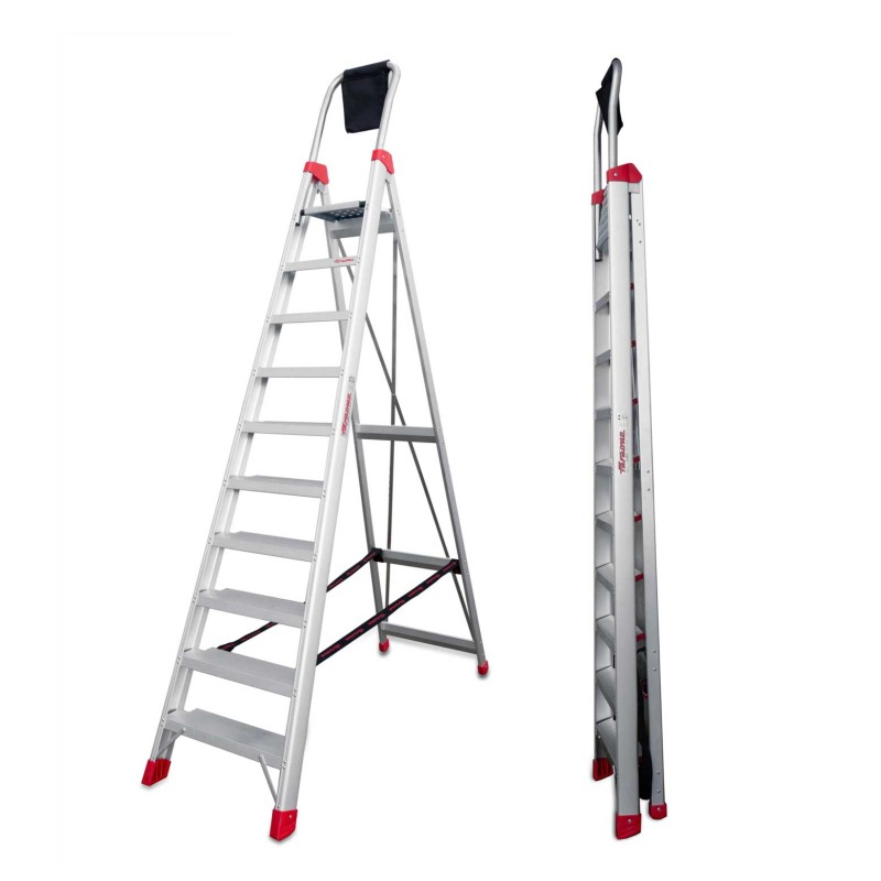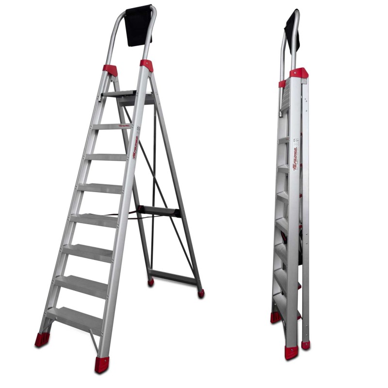 A escada DOMUS é fabricada em alumínio com montantes especiais de tipo C para a fixação de degraus com 130 mm de largura e rodas retráteis para facilitar a deslocação.