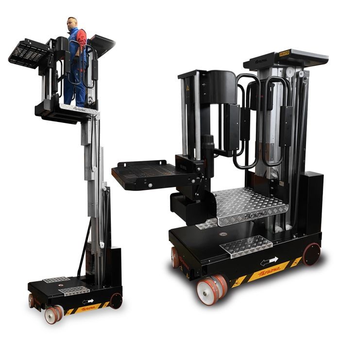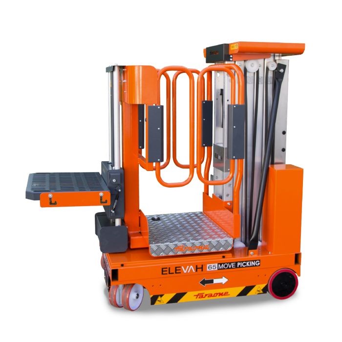 Concebida para tarefas de recolha, armazenamento, organização de armazéns, estantes e logística. A Elevah 65 Move Picking é uma plataforma de recolha que pode atingir uma altura máxima de 6,5 m.