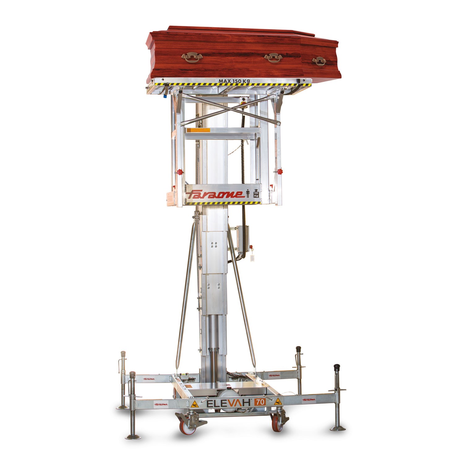 O caixão pode ser facilmente posicionado graças à base com roldanas deslizantes.