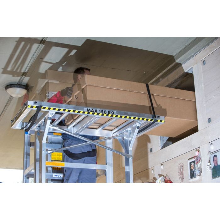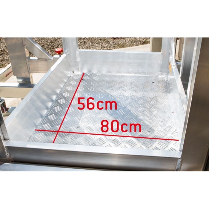 Altura máxima de trabalho 7 m (com estabilizadores) e 6 m (sem estabilizadores).