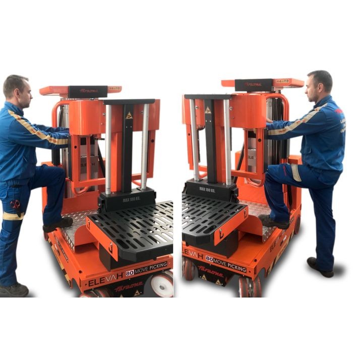 A Elevah 80 Move Picking é uma máquina extremamente compacta e leve, com mastros e cesto versáteis em alumínio. Ocupa pouco espaço e oferece uma grande manobrabilidade (raio de viragem zero).