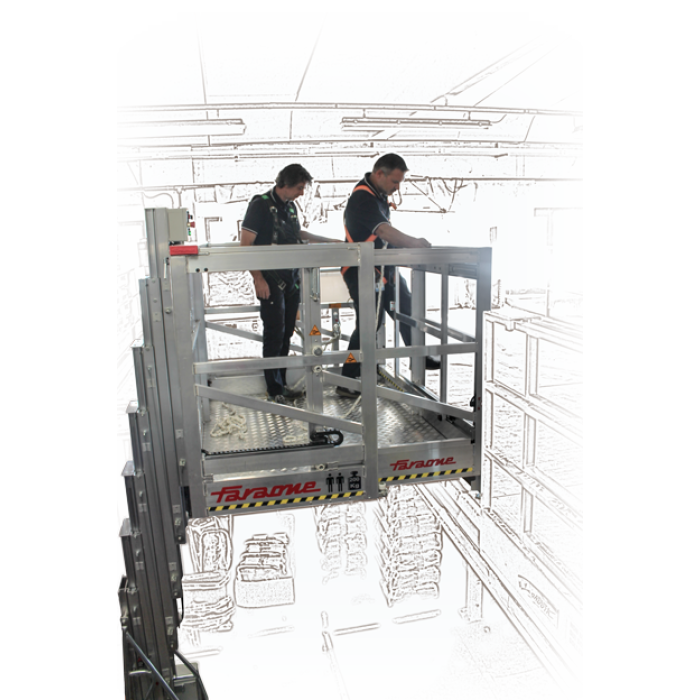Plataforma aérea homologada para aterragem em altitude. Possível em plataformas fixas e autopropulsadas especialmente fabricadas, para 2 operadores. Possível em plataformas autopropulsadas e fixas construídas para o efeito. Carga máx. 200 kg. Certificação CE homologada pela TÜV. Fabricado de acordo com a norma EN280.