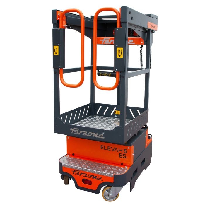 A Elevah 5 ES Move é uma plataforma compacta, ideal para trabalhos de manutenção no interior de lojas, centros comerciais e indústrias. O cesto pode ser estendido manualmente 60 cm, permitindo que a manutenção seja efetuada em locais onde existem obstáculos baixos ou de difícil acesso, tais como máquinas de trabalho como o CNC.