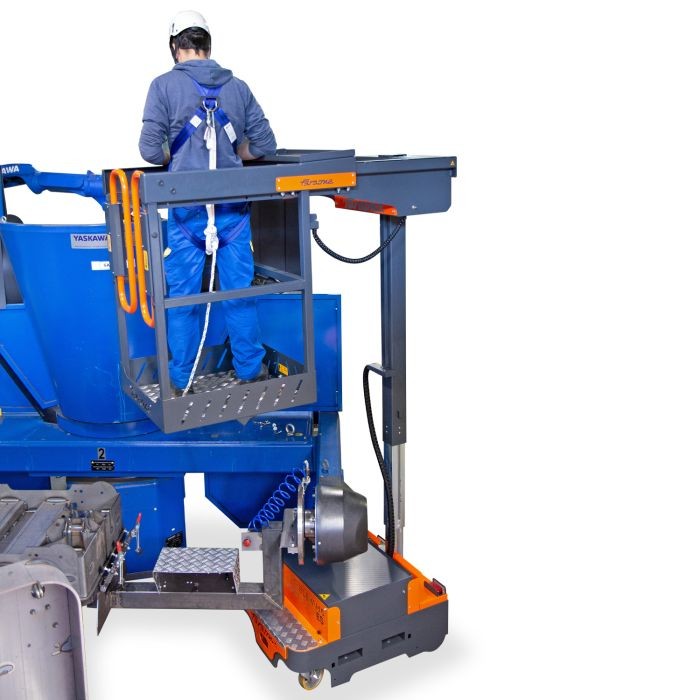 O cesto tem um acesso prático e seguro e permite ao operador trabalhar em altura protegido em todos os lados, minimizando assim o risco de lesões.