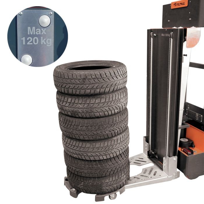 O Elevah 5 Tires é um empilhador ultracompacto de recolha especial concebido especificamente para a indústria dos pneus. Permite a recolha segura de um conjunto completo de pneus até um máximo de 120 kg.