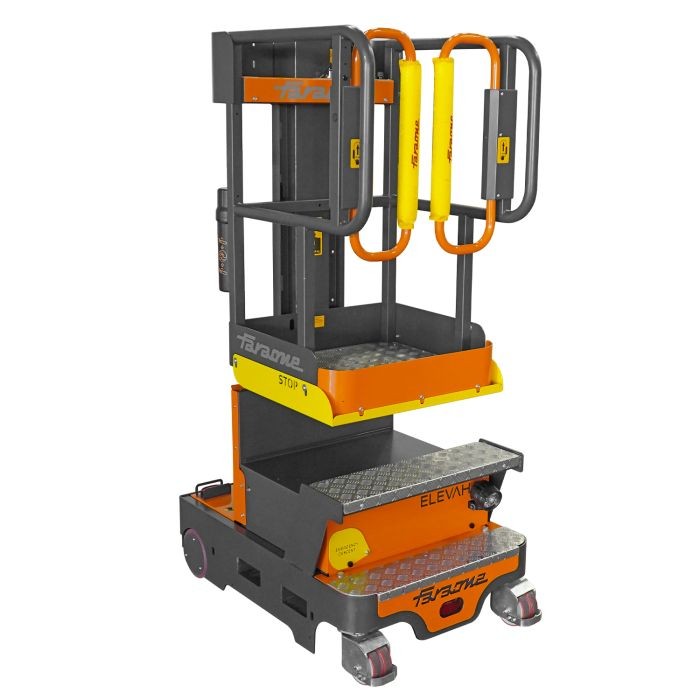 Temperatura de funcionamento de -10 °C a 40 °C.A Elevah 6 Move é uma solução inovadora para atingir alturas de até 6 metros com total segurança, concebida para proporcionar um desempenho superior e uma experiência de trabalho inigualável; perfeita para espaços confinados e áreas com acesso limitado. Com um peso de 660 kg, a Elevah 6 Move é leve e manobrável, tornando-a fácil de transportar e aumentando a sua flexibilidade operacional. Graças ao seu raio de viragem zero, é facilmente manobrável em espaços confinados, como corredores estreitos, aumentando a eficiência do trabalho e reduzindo o tempo de inatividade. Foi concebida para assegurar uma base sólida