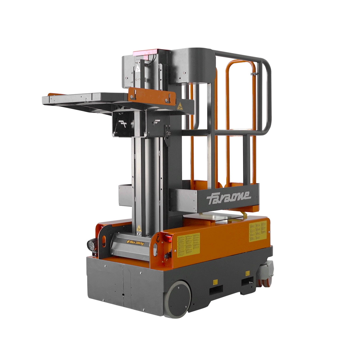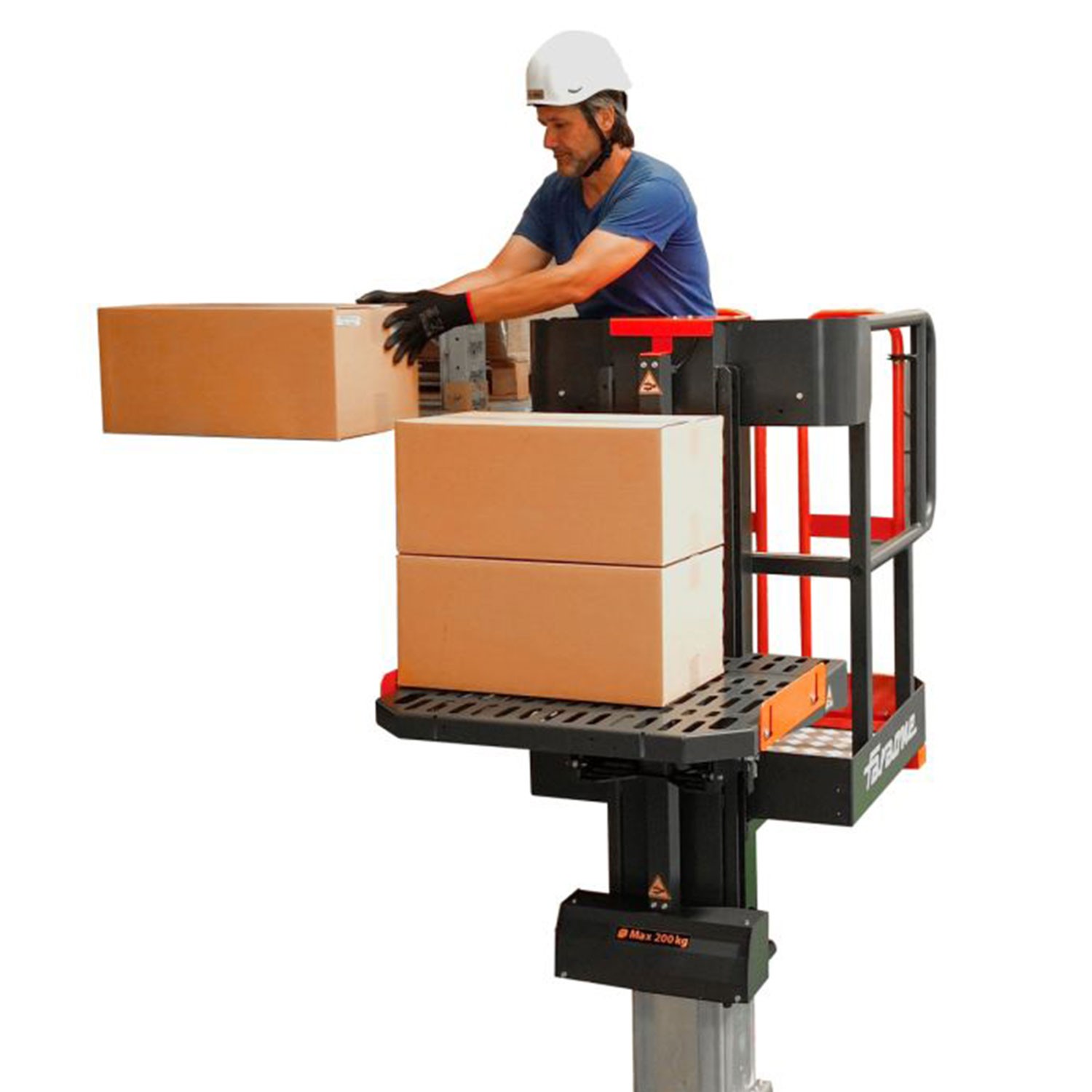 A nova plataforma de picking, maior e com capacidade de carga até 200 kg, é elétrica com motorredutor reforçado para reduzir o esforço e permitir o trabalho mesmo em espaços limitados. Durante todas as operações, o operador mantém uma postura natural e segura graças à otimização da ergonomia e da estabilidade.