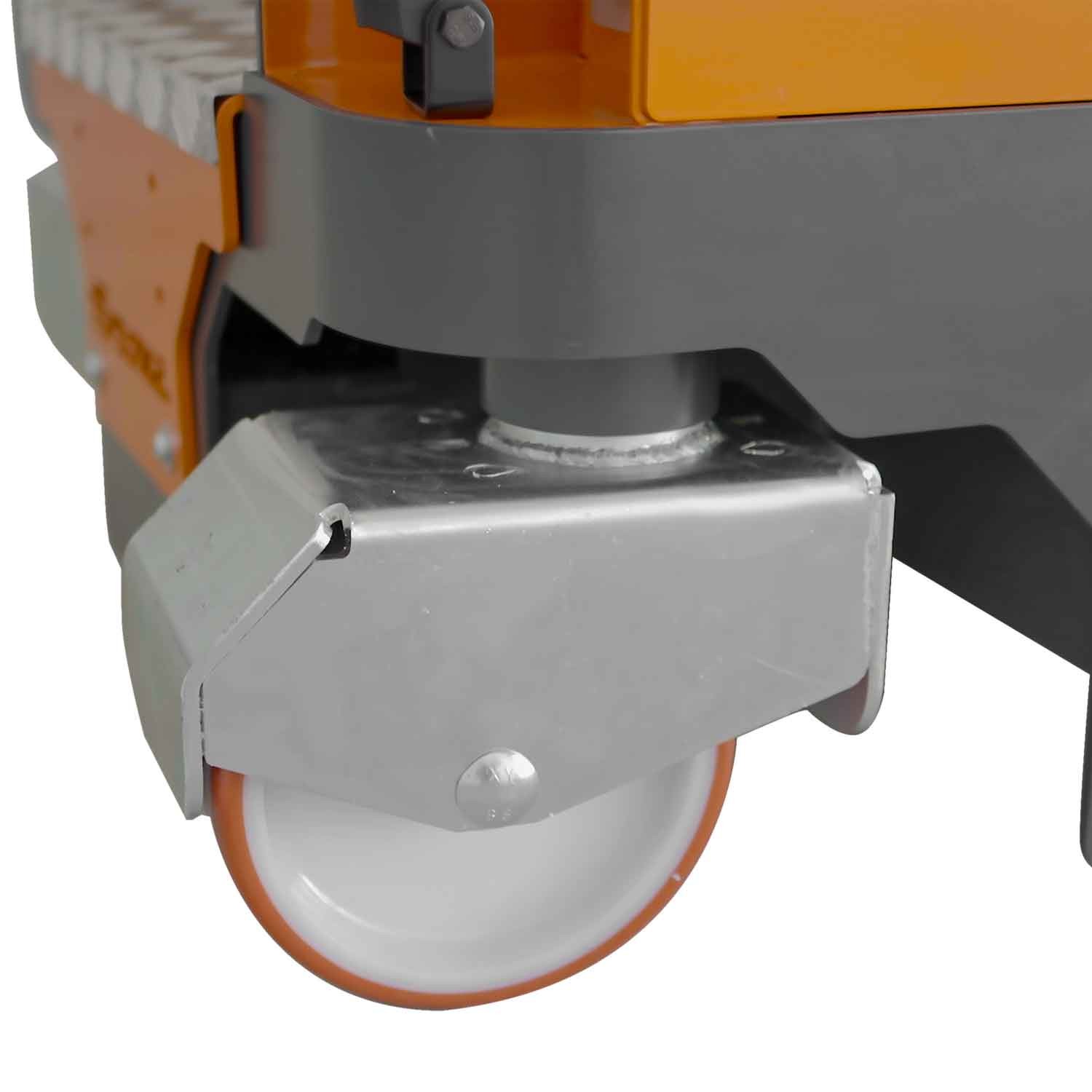 Com dimensões de 128x78 cm e raio de viragem zero, a Elevah 8 Move é extremamente manobrável mesmo em espaços muito reduzidos. O novo acesso frontal com degrau integrado permite ao operador subir facilmente, aumentando a segurança e o conforto. A coluna monobloco robusta e os patins ajustáveis garantem estabilidade e precisão superiores em cada operação.