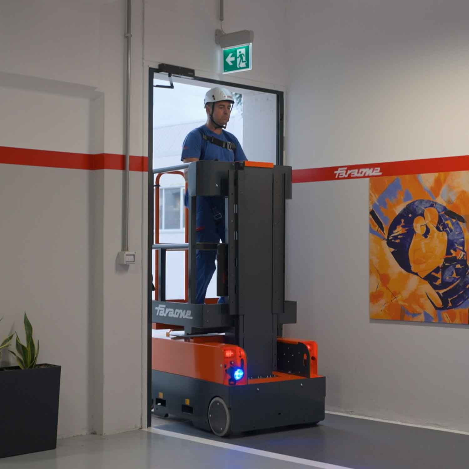 A Elevah 8 Move pode ser equipada com bateria dupla, permitindo uso contínuo sem interrupções. A manutenção é simples graças ao acesso imediato a todos os componentes da base, otimizando tempo e custos operacionais. Além disso, a estrutura fechada mantém a máxima compacidade, permitindo a passagem sob portas padrão sem dificuldade.