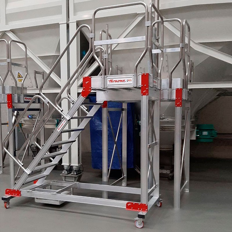 Estrutura leve e robusta inteiramente em alumínio, concebida para um acesso seguro e com degraus confortáveis e antiderrapantes.