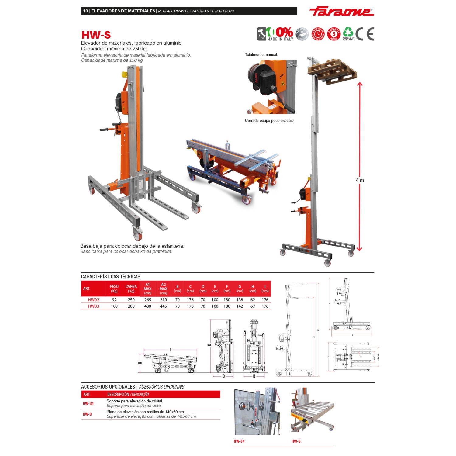 HW-S | Elevador de materiais em alumínio, capacidade máxima 250 kg.