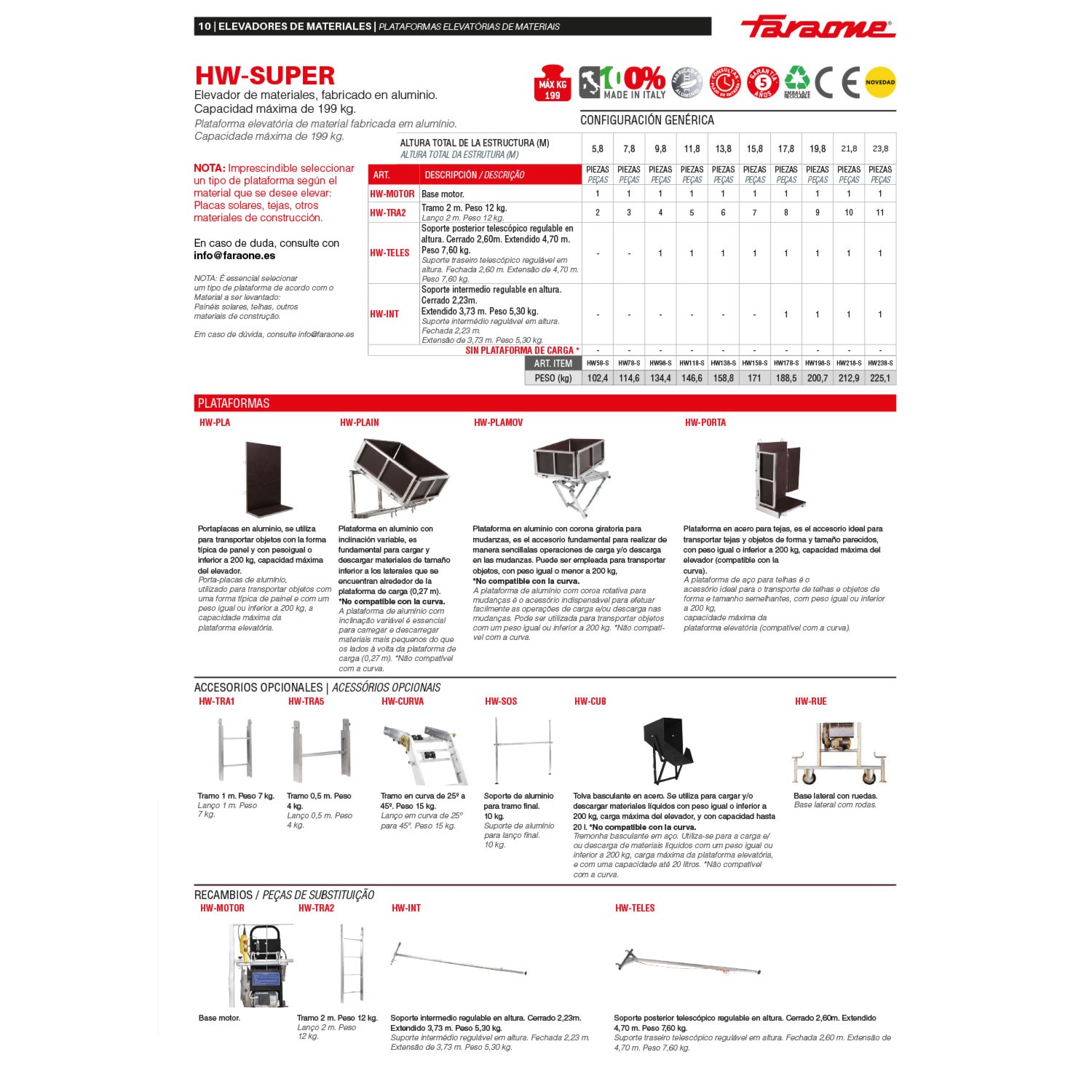 NOTA: É essencial selecionar um tipo de plataforma de acordo com o material que se pretende elevar: Painéis solares, telhas, outros materiais de construção. Em caso de dúvida, contacte info@faraone.es