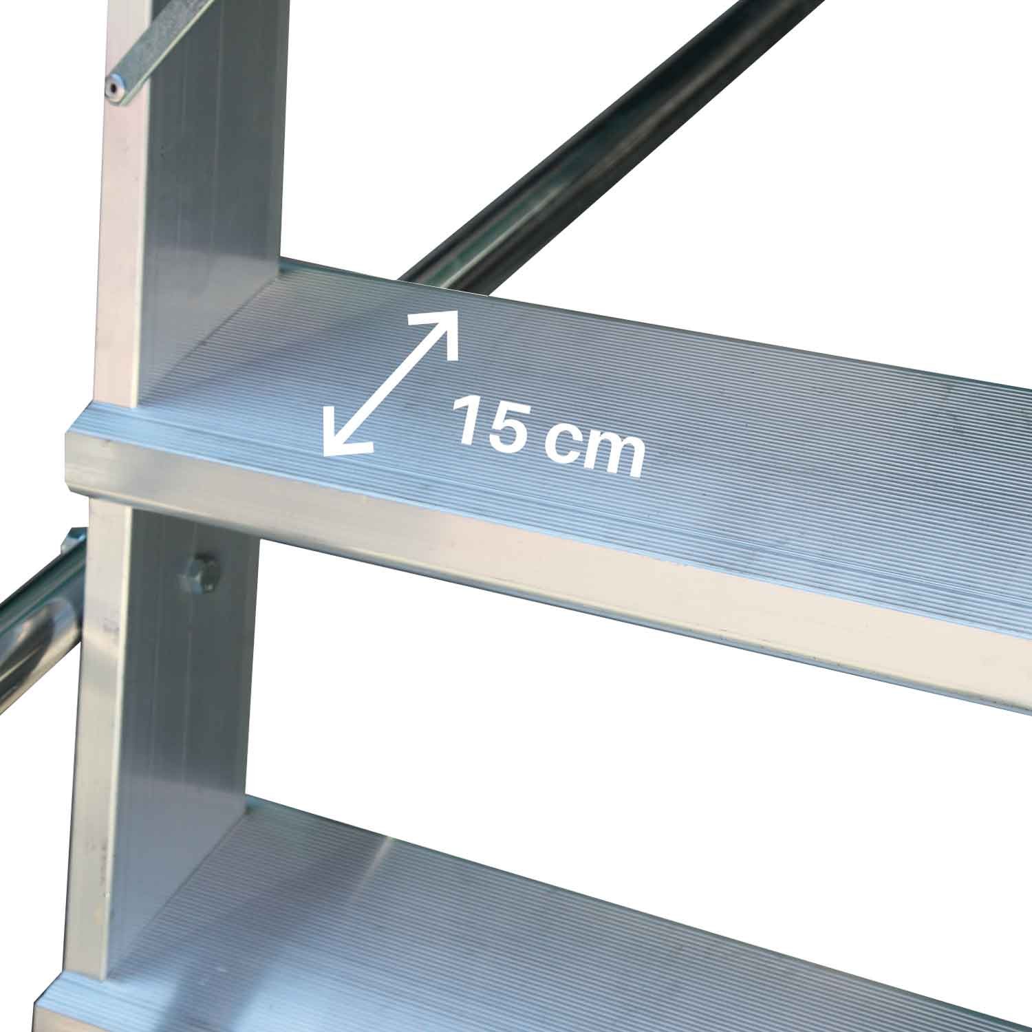 Este produto está em conformidade com a norma europeia EN 131 e é fornecido juntamente com o certificado de conformidade e o manual de instruções. A carga máxima que pode suportar é de 150 kg.