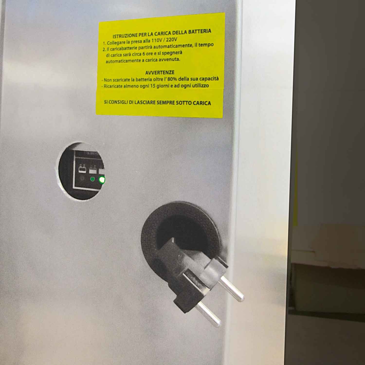 Equipada com rodas dianteiras, base estabilizadora e sistema patenteado SICUR-STOP de movimentação e ancoragem. Alimentação com bateria recarregável para a superfície de trabalho.