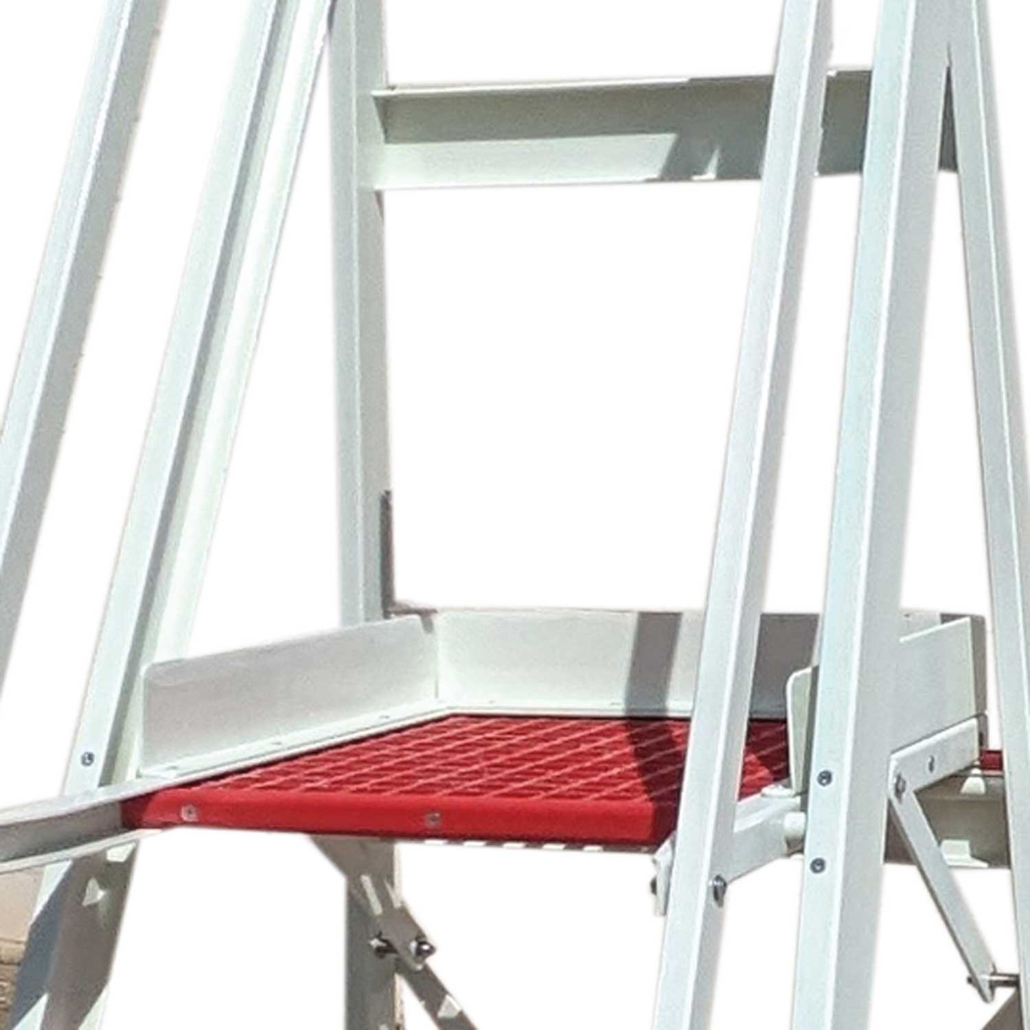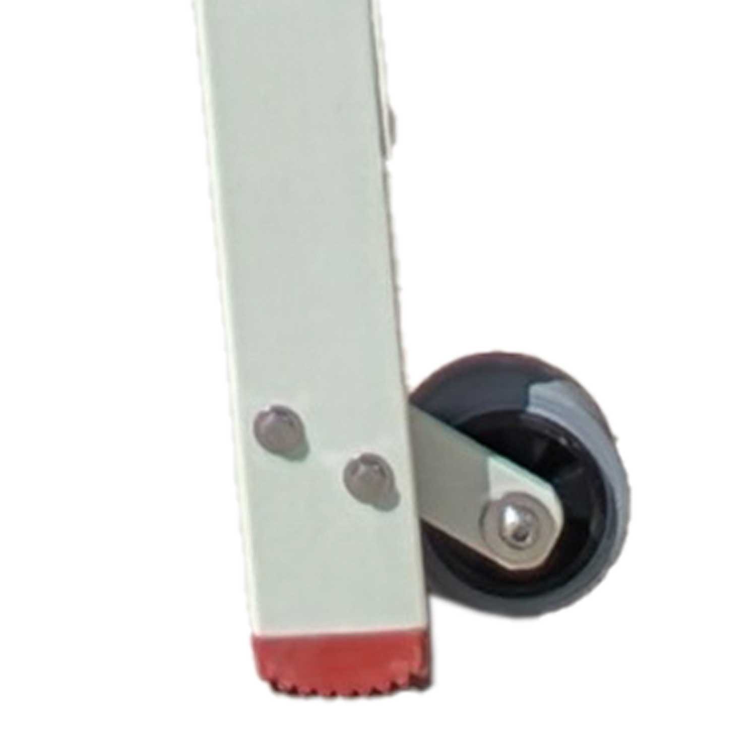 Escada dobrável com rodas e ampla superfície de trabalho antiderrapante em tramex, inteiramente em fibra de vidro.