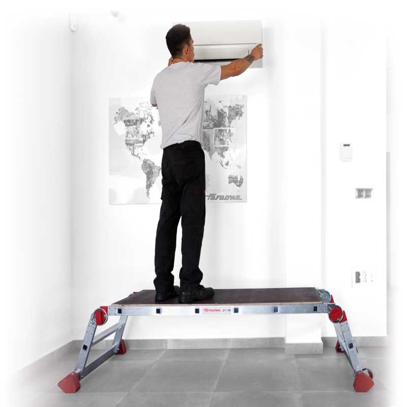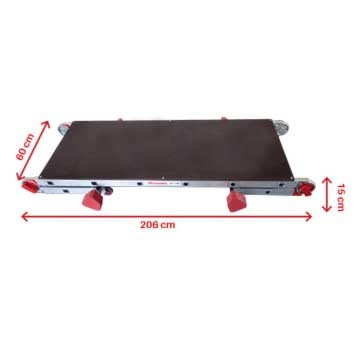 A PLA é uma plataforma de trabalho dobrável com rodas e ampla superfície de trabalho feita de uma madeira especial à prova de água. Estrutura leve e robusta, fabricada em alumínio, com uma superfície de trabalho de 206x60 cm.
