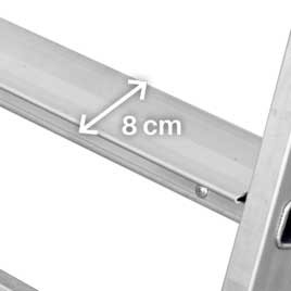 O acesso à plataforma é feito através de uma escada com degraus antiderrapantes com 8 cm de profundidade.