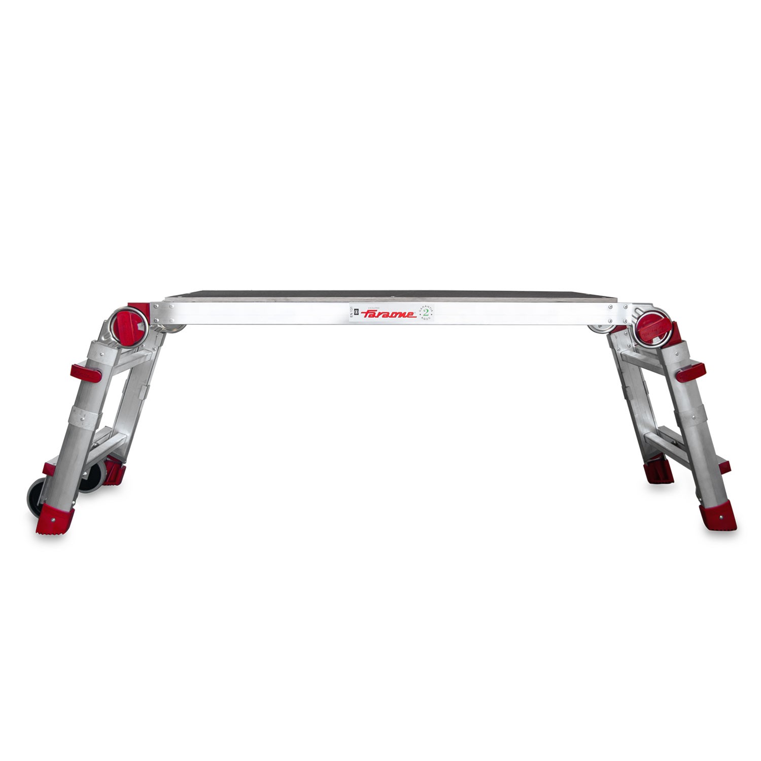 A PLAT é uma plataforma de trabalho dobrável com rodas e ampla superfície de trabalho feita de uma madeira especial à prova de água. A principal vantagem deste modelo de plataforma é o facto de poder ser regulada em altura, o que permite trabalhar também em pisos que não estão perfeitamente nivelados, como passeios ou escadarias.