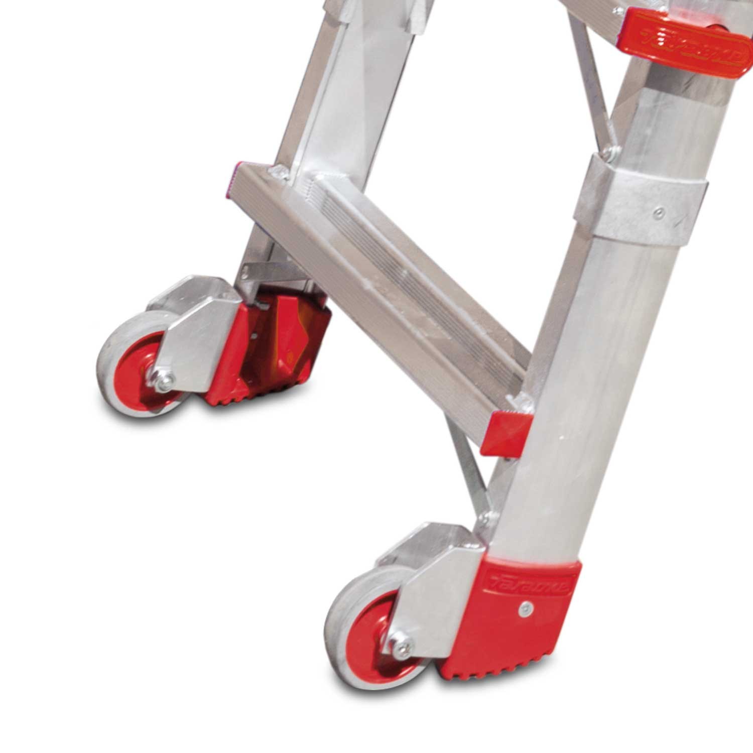 A escada é movida por duas rodas com 8 cm de diâmetro instaladas na parte traseira.