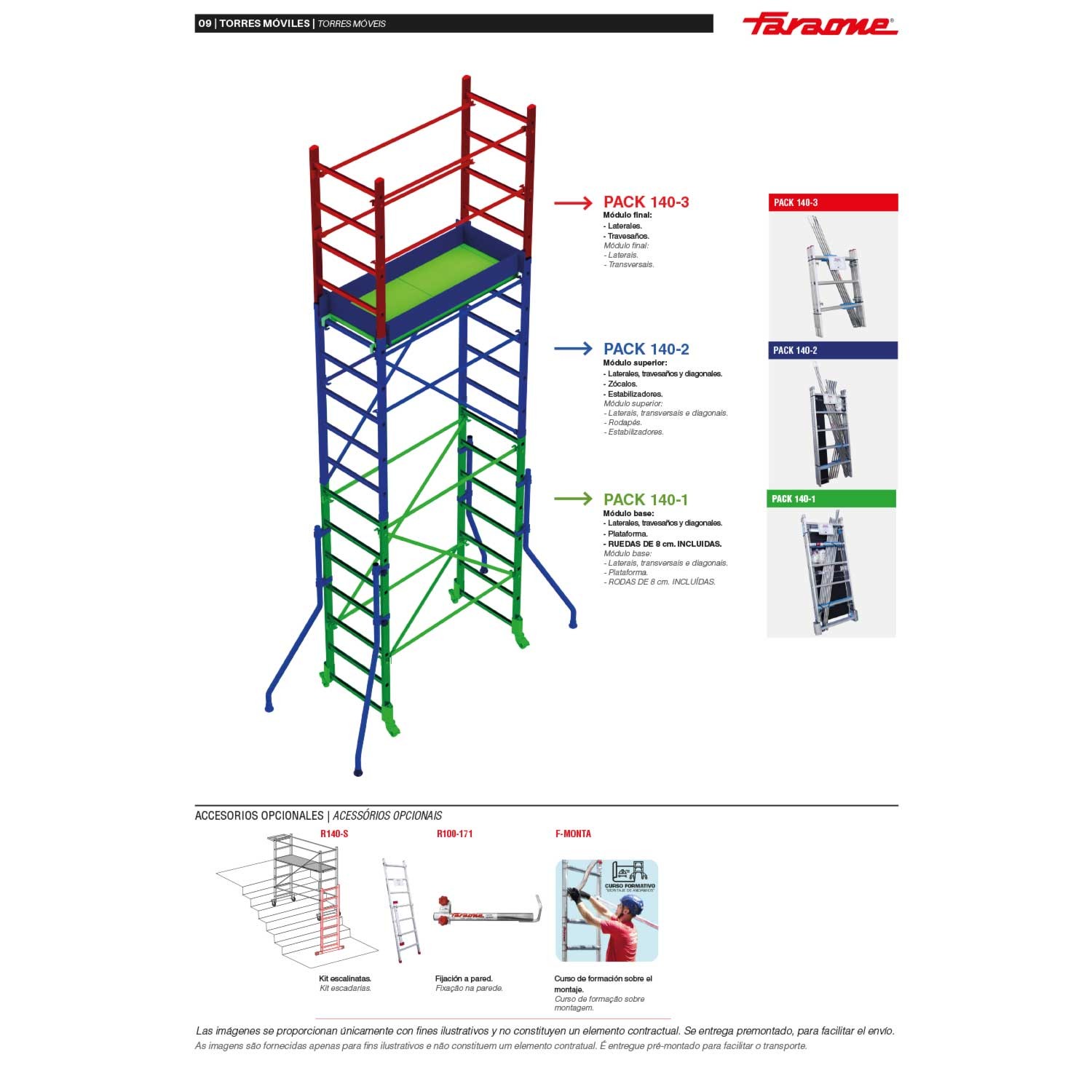 A principal vantagem deste produto é a sua rápida montagem, pois possui módulos de diferentes alturas que, combinados, atingem uma altura até 4,5 m.