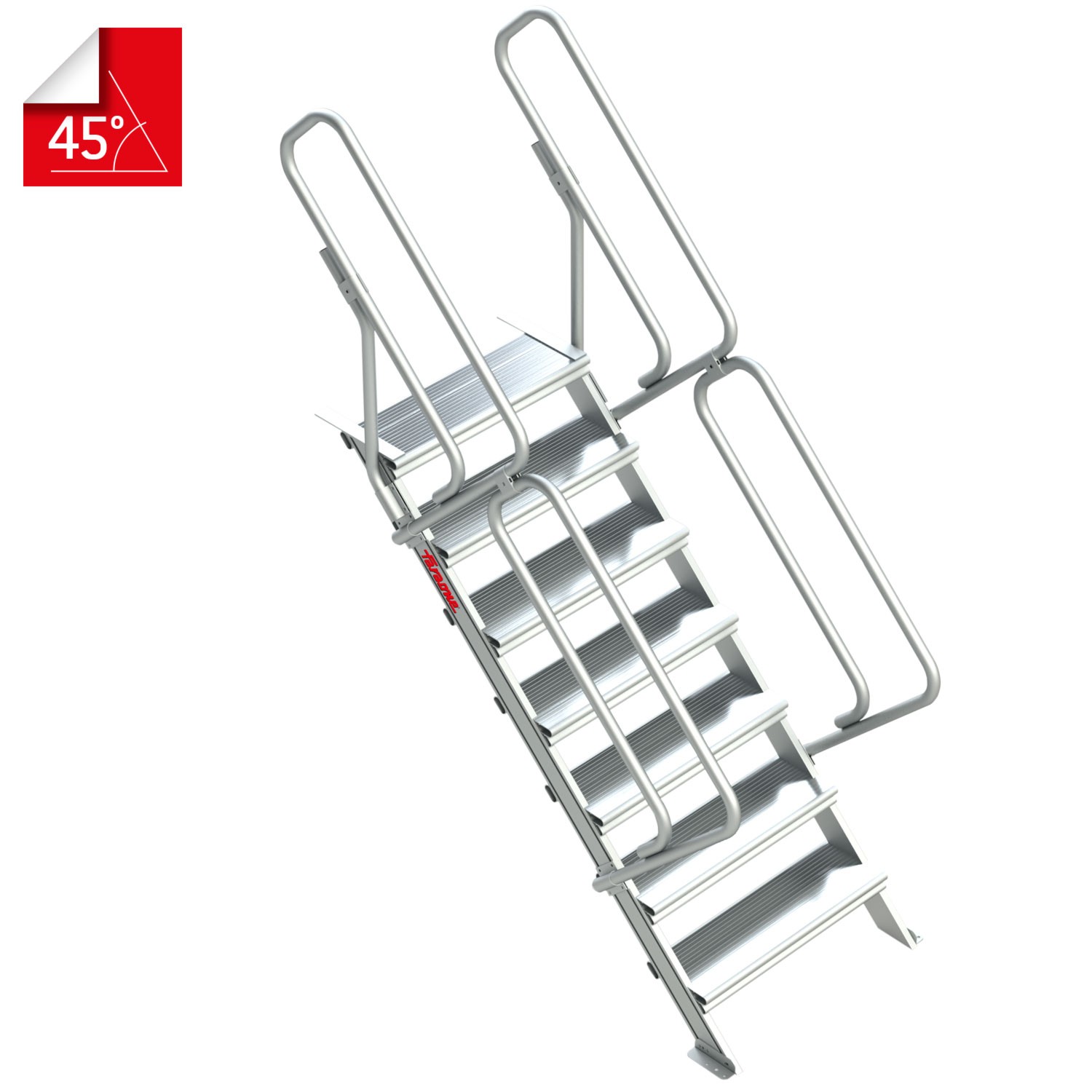 O lanço de subida tem uma inclinação de 45º para uma subida prática e segura.