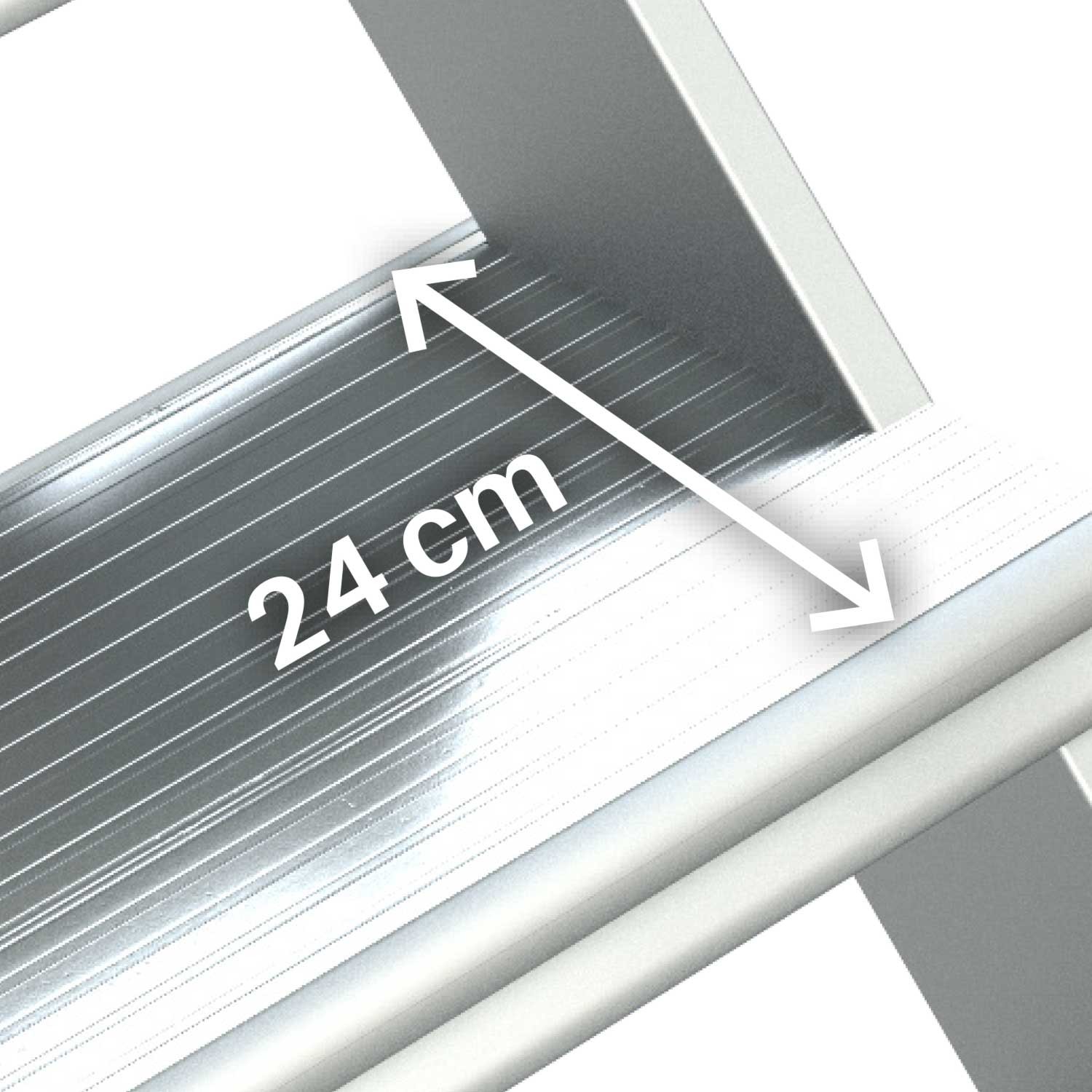 A parte traseira é vertical, o que permite aproximar a escada de máquinas, paredes verticais e prateleiras.