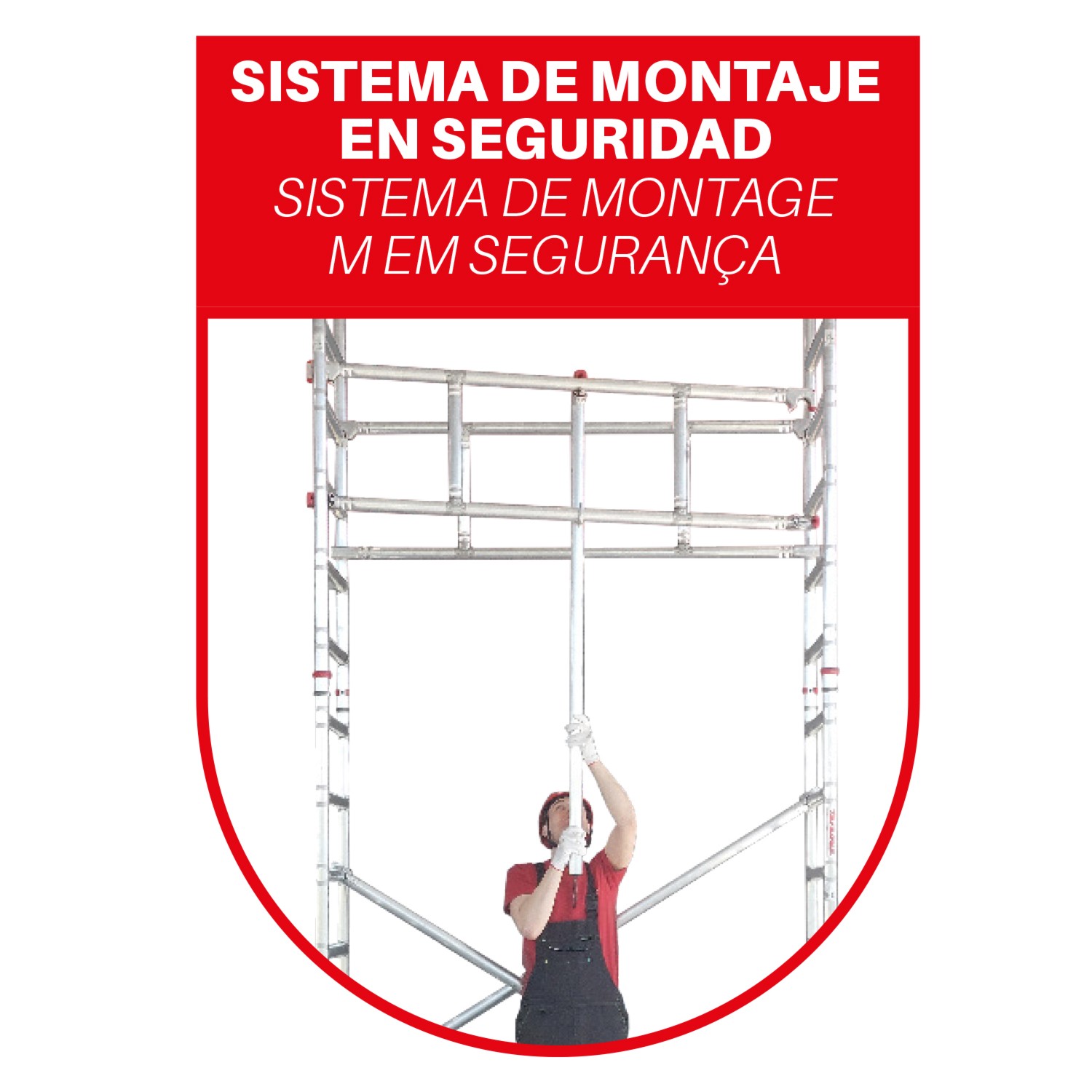 O sistema de andaime TOP SYSTEM 135 de montagem segura inclui um sistema de montagem novoem que o gradil pode ser montado a partir de baixo e o operador acede à área de trabalho já totalmente protegida, limitando ao máximo o risco de queda em altura.