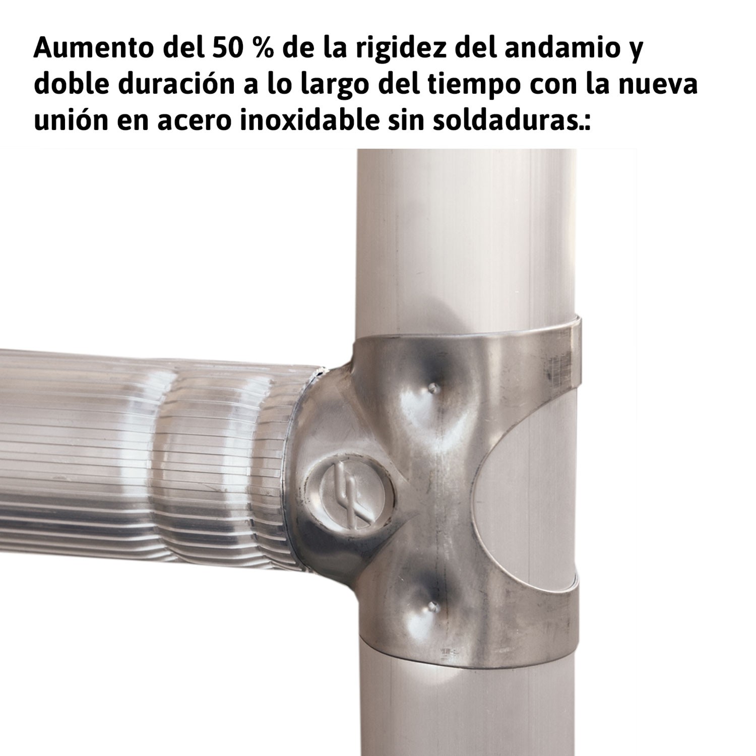 A subida é confortável graças a uma distância mais curta entre degraus. 7 degraus de cada lado, em vez dos 6 que são habitualmente colocados nas laterais dos andaimes disponíveis no mercado.