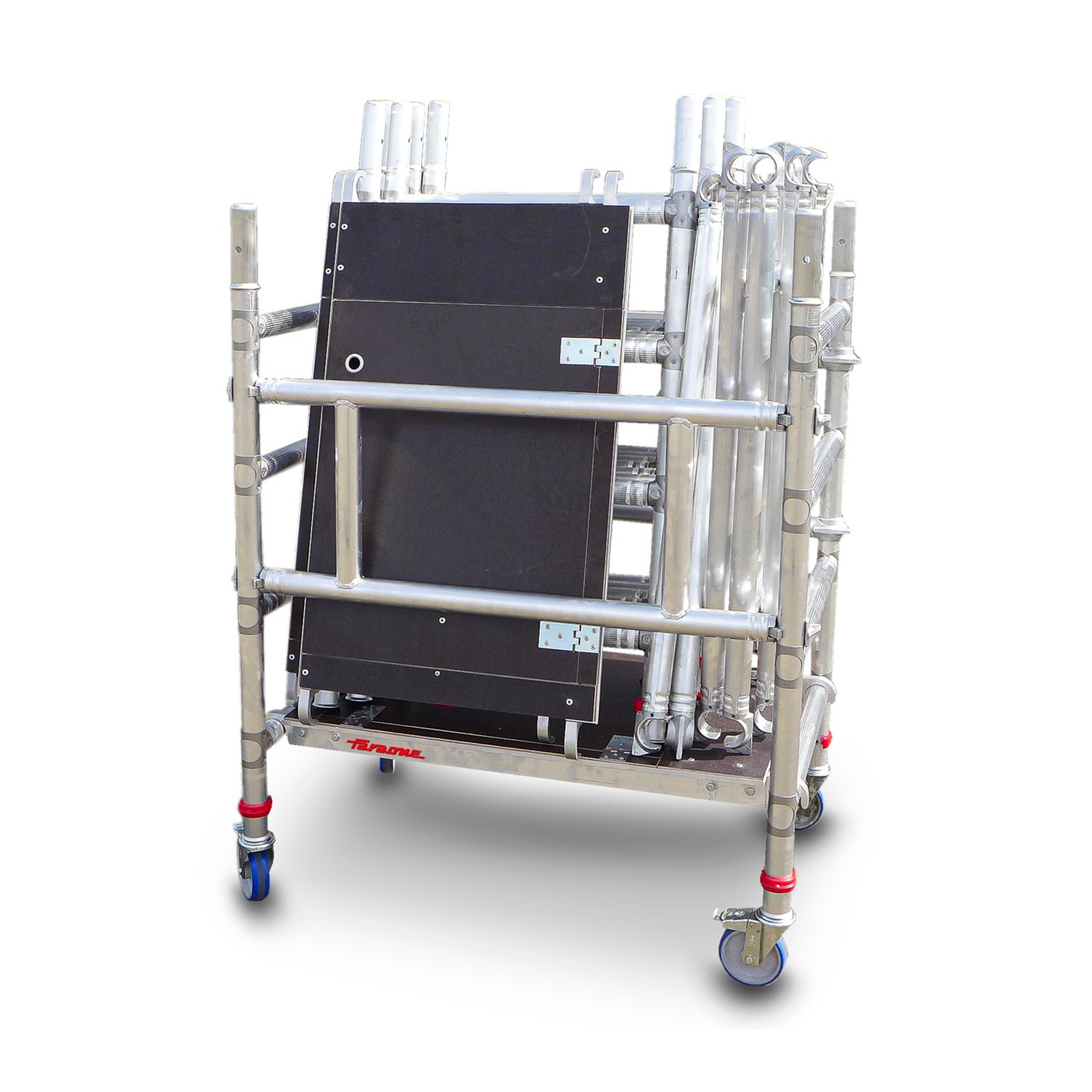 A subida é confortável graças a uma distância mais curta entre degraus. 7 degraus de cada lado em vez dos 6 que são habitualmente colocados nas laterais dos andaimes disponíveis no mercado.